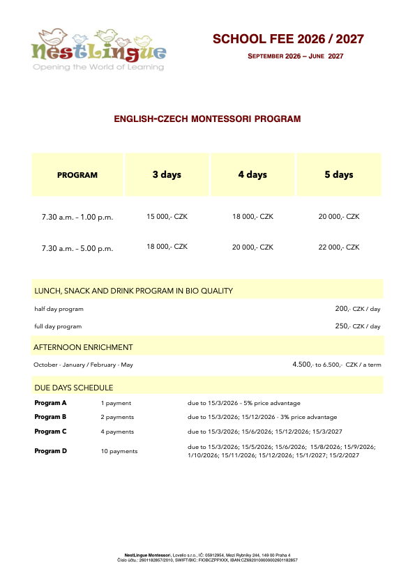Individual care is given to a maximum of 4 children in the Toddler class. A high quality of Montessori education is given to 20 children in the Primary class.